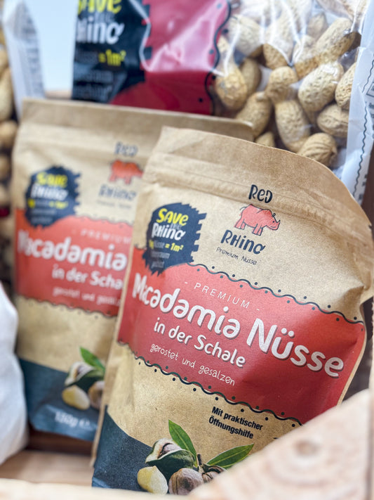 Red Rhino Macadamia in der Schale 150 g, geröstet und gesalzen